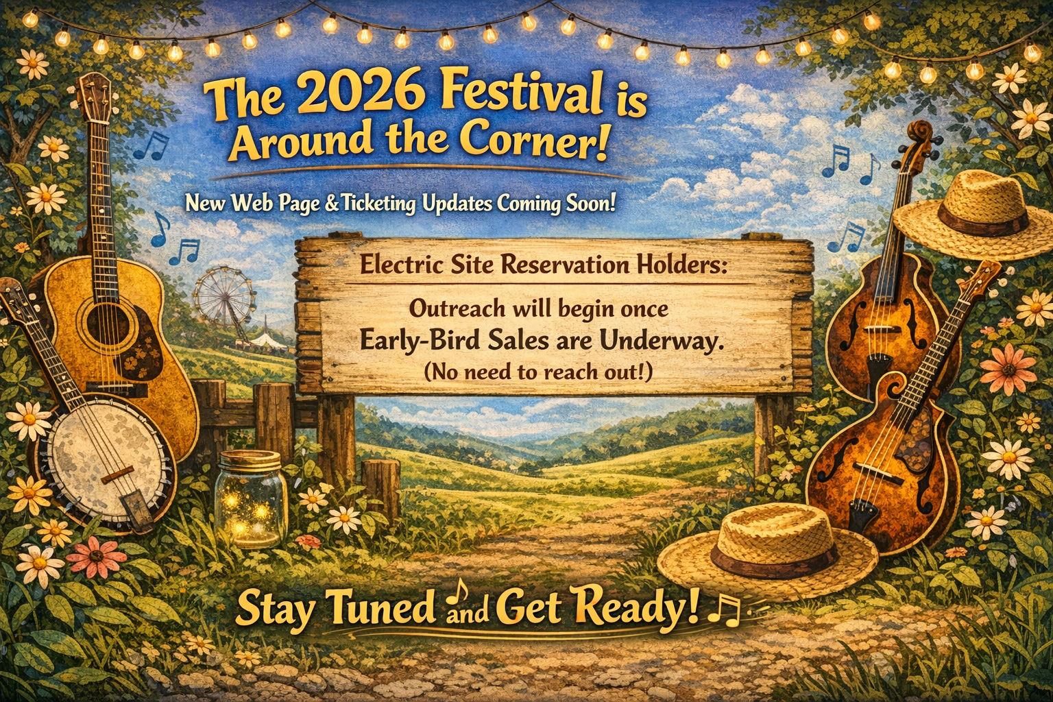 Sites are first offered to the prior year reservation holder, any remaining sites are then offered to folks who have signed up for the electric camp site waiting list. Reservation outreach customarily takes place immediately before tickets go on sale. If you are a prior year reservation holder, you do not need to reach out to the coordinator unless you have not heard from them by February.