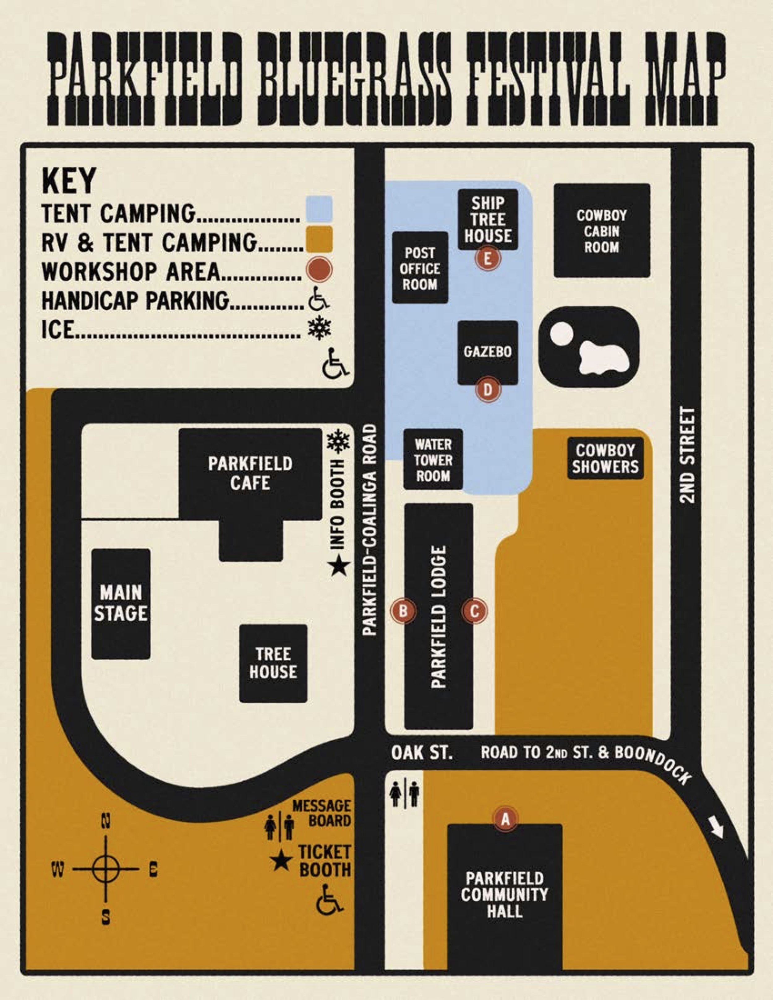 Other areas for camping are on a first come, first served basis. We have dozens of acres of ‘open’ dry camping in the ‘Boondocks’ area across the cattle guard near the community center. There are no designated sites, just find a place to camp & set up. Please do not ‘reserve’ space for those arriving later. Please do not block fire lanes.